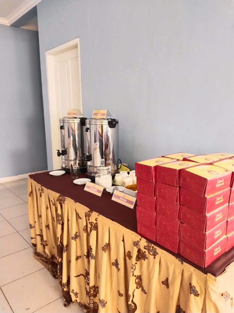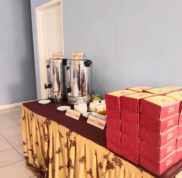Kesiapan dan Kebersihan: Pastikan area coffee break selalu bersih dan siap sedia untuk pengunjung. Siapkan tisu dan perlengkapan tambahan seperti gula atau susu untuk kopi.
